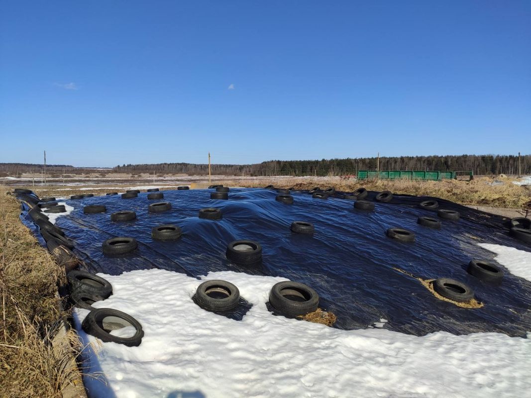 Максимальная ширина пленки равна 26 метрам. Благодаря таким параметрам можно максимально оперативно укрыть корма от дождя и солнца.